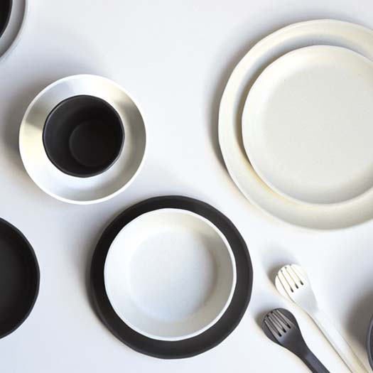 シンプルでエッジの効いたデザインで、幅広い用途に使えるサイズとカラー展開です。縁の小さな傾斜は、テーブルから持ち上げる際に指を掛けやすい形状となっています。