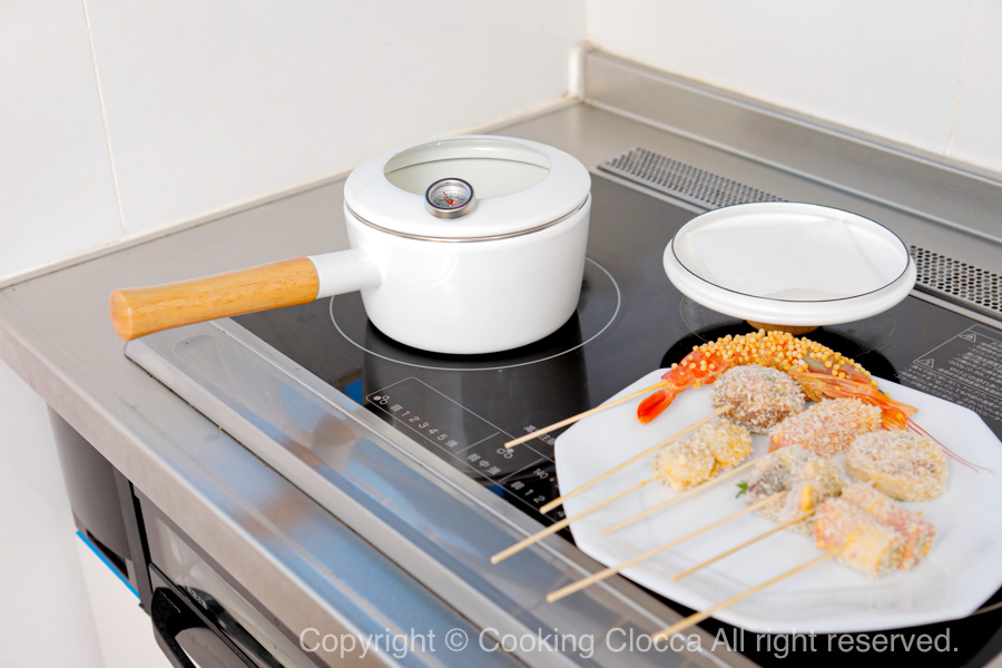 富士ホーローの2WAY仕様で便利な片手天ぷら鍋を使って、毎日仕事を頑張ってる夫へ感謝の気持ちをこめて串揚げを作ってみました。