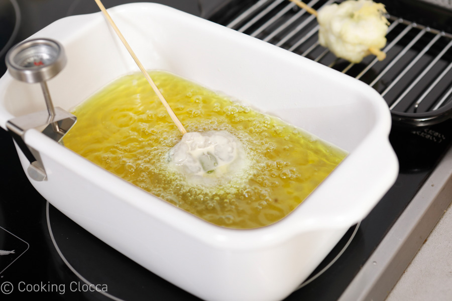 170°C~ 180°Cになった油で揚げます。 温度計があると安心しますね。