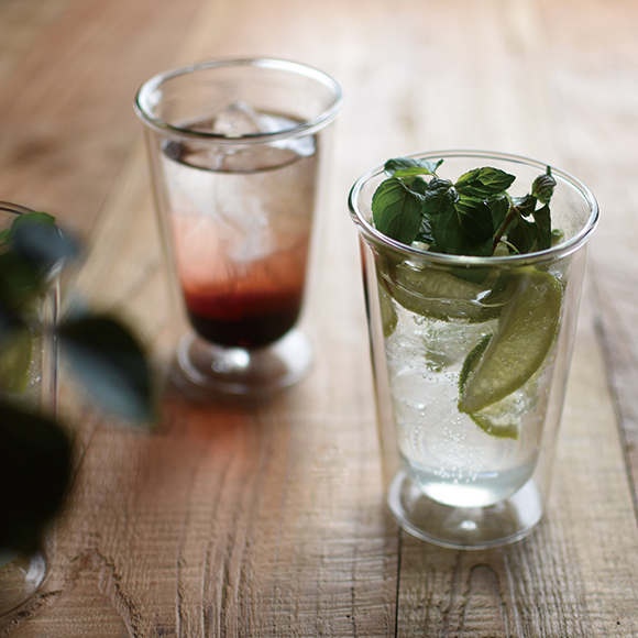 耐熱ガラスの二重構造で注いだものが宙に浮かんだように見えるKRONOS。土星の輪を思わせるリングは心地よいグリップ感をもたらし、カップの内側はドリンクを飲み干しやすい角度に設計されています。断熱効果があるため、冷たさ、熱さをより長くキープ。ドリンクだけでなくデザートカップとしても使うことができます。